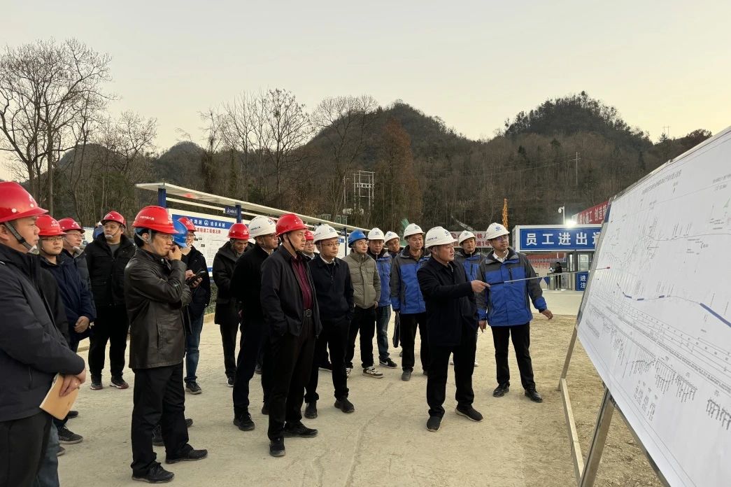 在白石岩隧道1、2号横洞现场,李小兵一行听取了项目负责人对控制性工程总体情况、“四新”技术应用、网格单元划分、施工标准化和穿透式管理等情况的介绍,对项目关于穿透式管理所做的工作表示高度肯定和称赞。