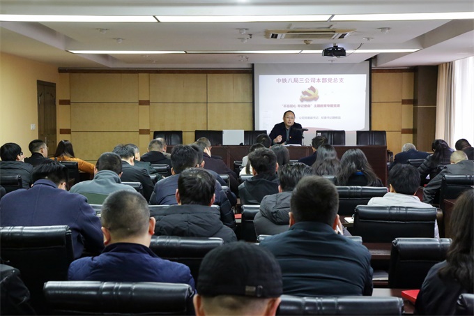 11月18日下午,公司本部党总支组织召开“不忘初心、牢记使命”主题教育专题党课。公司党委副书记、纪委书记颜修品出席并授课。公司本部全体员工100余人参加。