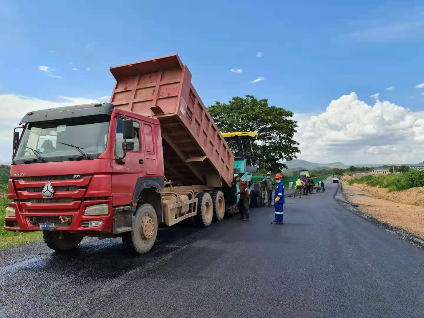 刚波夫矿区道路硬化刷黑工程位于刚果(金)重要矿业城市加丹加省利卡西市刚波夫镇,于今年10月开工。随着疫情防控步入“常态化”,各境外国家限行政策松动,国际航班陆续恢复,海外公司员工纷纷主动请缨,陆续奔赴境外工作岗位。8月以来,海外公司先后派遣40余名员工奔赴境外项目,极大地缓解了境外项目一线人员的工作压力。刚波夫矿区道路硬化刷黑工程施工过程中,正值刚果(金)雨季,加上当地新冠疫情形势依然严峻,给施工生产、物资调配和人员组织带来重重困难。海外公司刚波夫项目部精心组织,科学部署,全力做好常态化疫情防控工作,严格执行上下岗体温检测、驻地每日定期消杀、中刚员工坚持佩戴口罩、保持社交距离等防疫措施,确保防疫工作“零死角”;成立技术攻关小组,倒排工期,见缝插针抓住雨后黄金施工时期,与雨季赛跑,在抗击疫情和鏖战雨季施工中勇于亮剑。