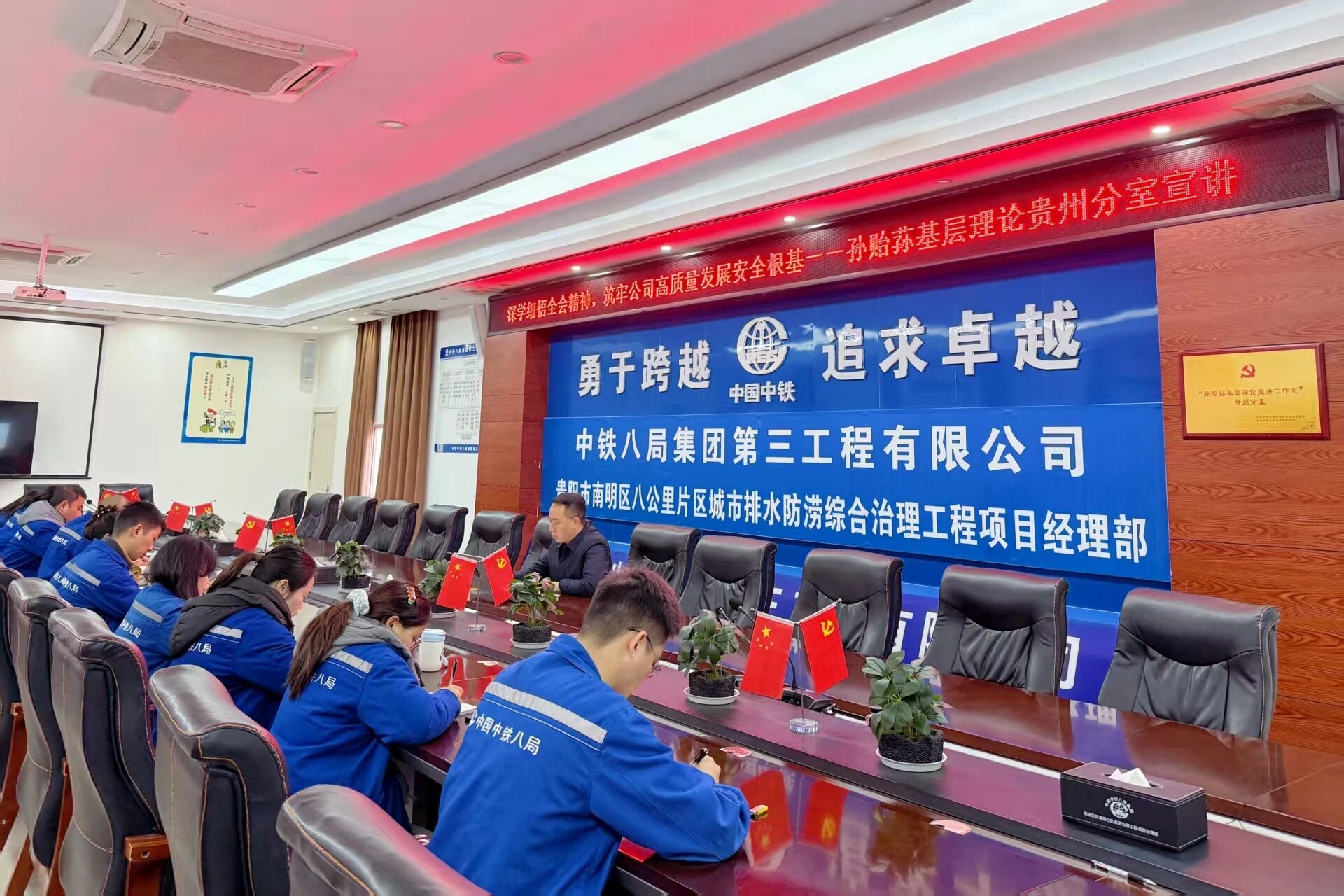 12月30日,中铁八局“孙贻荪基层理论宣讲工作室”副组长、贵州分室组长、全国五一劳动奖章获得者艾江临走进贵阳市南明区八公里片区城市排水防涝综合治理项目施工现场,开展党的二十届四中全会精神解读暨安全生产专项行动专题宣讲,把理论政策与安全要求精准传递到施工最前沿。