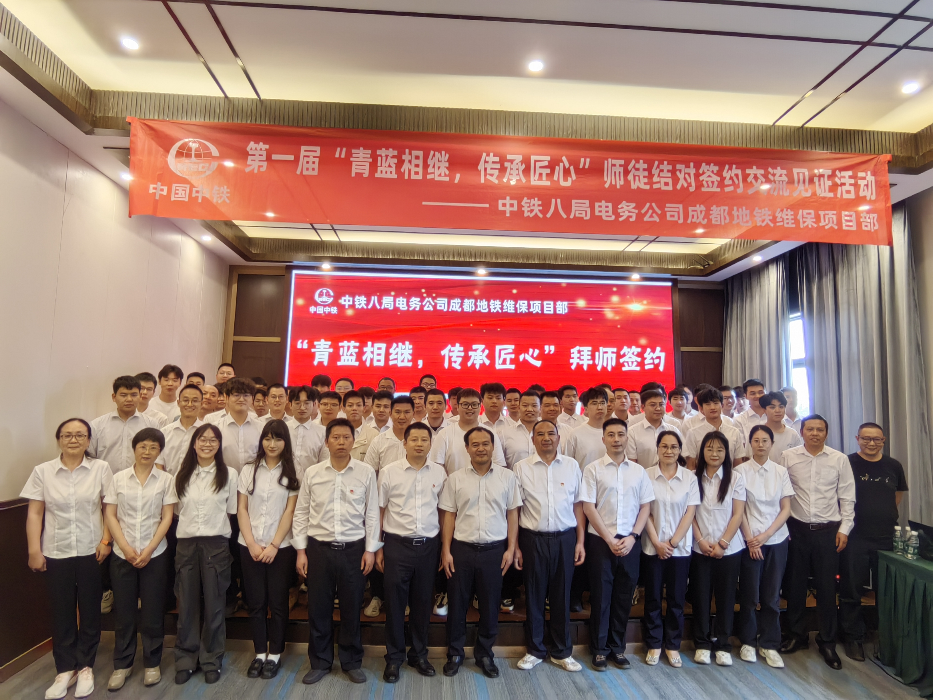 4月23日,电务公司成都地铁维保项目部在蓉组织开展“青蓝相继,传承匠心”拜师签约交流见证活动。