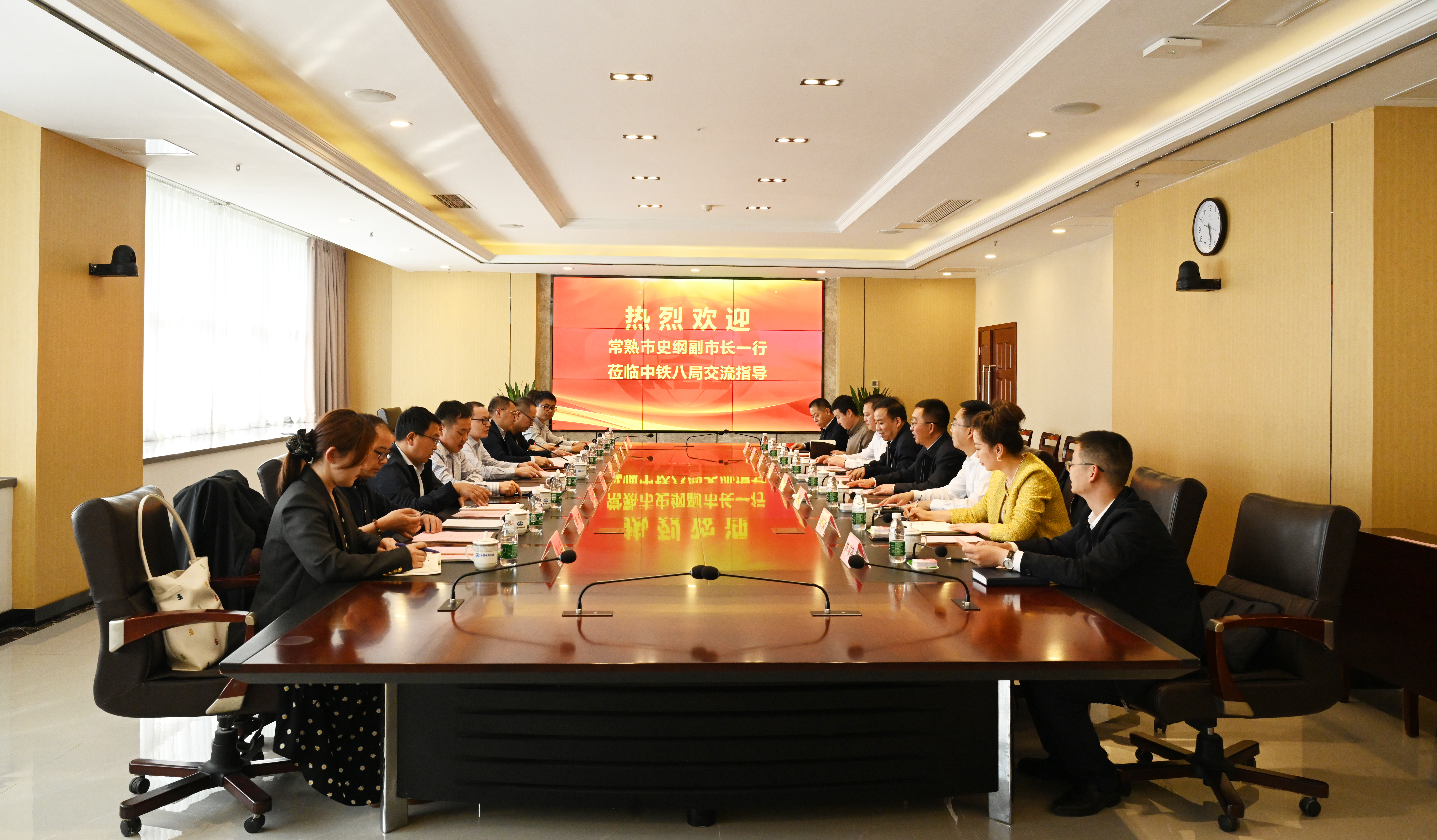 常熟市交通运输局、城市管理局、资规局、市政府办公室、发改委、交通产业投资等有关领导,中铁八局投资发展部、财务会计部、经营开发中心、东部指挥部、投资公司等相关负责人参加座谈。
