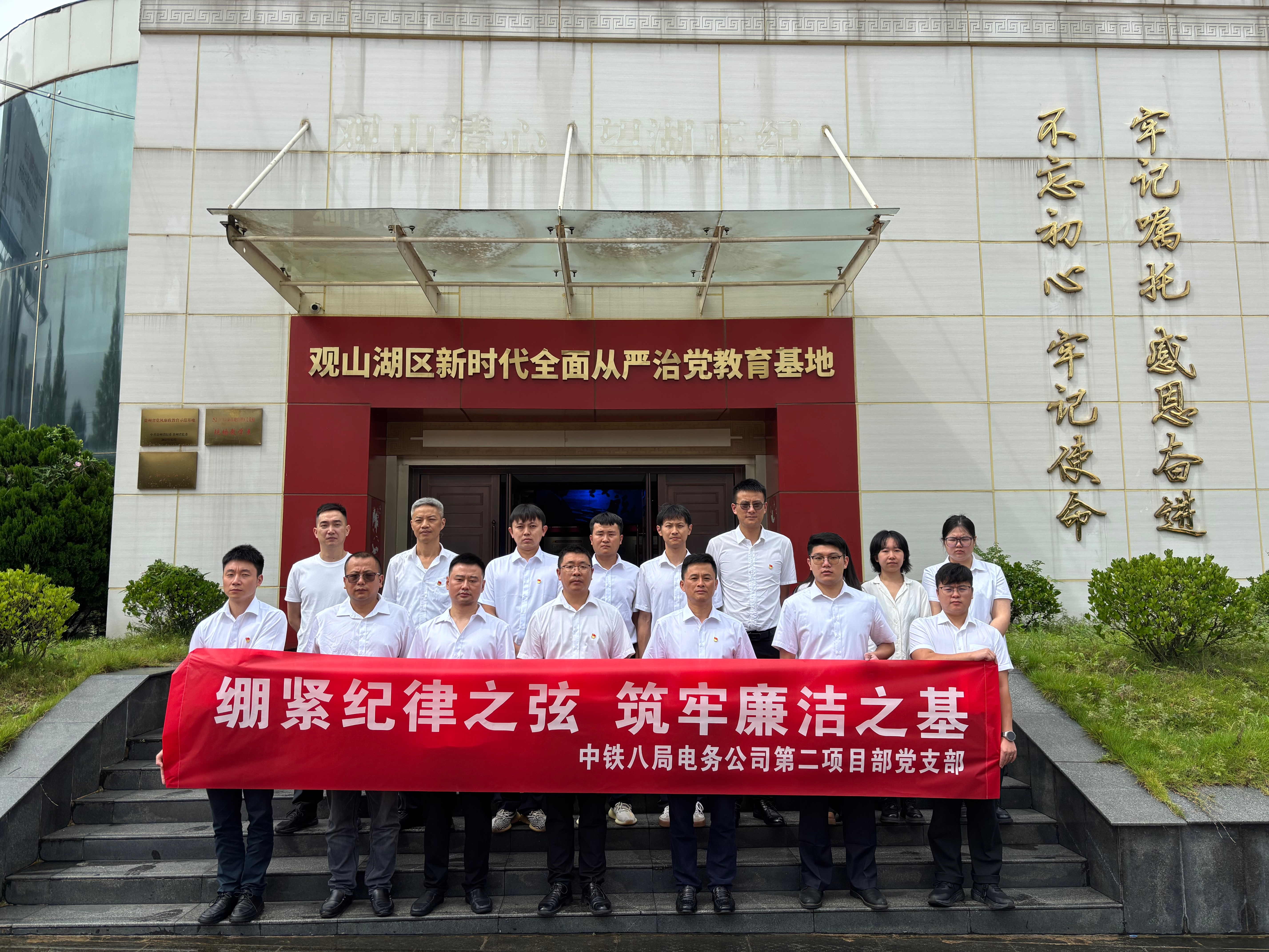 为落实全面从严治党要求,持续巩固深入贯彻中央八项规定精神学习教育成效,进一步夯实党员干部廉洁自律思想根基,8月21日,公司第二项目部精心组织全体党员前往观山湖区新时代全面从严治党教育基地,开展“绷紧纪律之弦 筑牢廉洁之基”主题廉洁警示教育活动,以沉浸式学习推动纪律意识入脑入心。