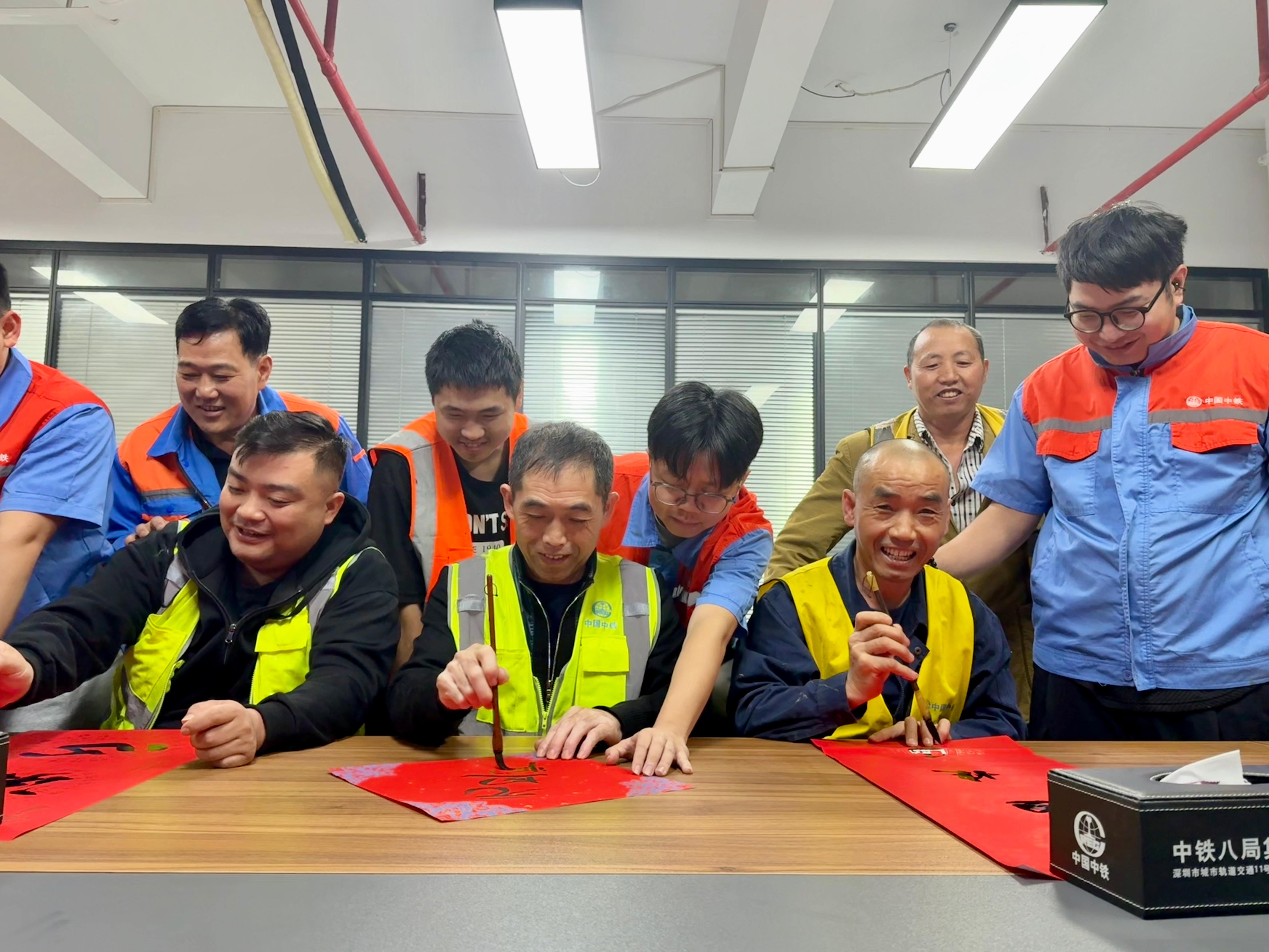 创新服务载体 奏响人文关怀“暖心曲”项目部始终将工友需求放在首位,在扎实推进技能培训的基础上,不断创新夜校活动形式,丰富服务内涵。在全年民工夜校收官之际,工会突破传统教学模式,以“工会搭台传墨韵 工友挥毫迎新年”为主题,精心策划书法写春联特色活动,将中华优秀传统文化与年关喜庆氛围深度融合,为工友们送上别样的人文关怀。活动前期,工会细致筹备,备齐笔墨纸砚等物资,并特邀内部具有深厚书法功底的员工作为指导老师;课堂上,指导老师从握笔姿势、运笔技巧到春联章法布局,耐心细致地讲解示范,全程陪伴指导工友创作。原本手握扳手、挥洒汗水的工友们,此刻手执毛笔、凝神创作,在一笔一划中感受传统文化魅力,在红彤彤的春联中寄托新年期许。此次活动不仅让工友们学会了书法技巧,更让大家将亲手书写的春联带回家,切实增强了工友的归属感与幸福感,让严肃的工地夜校变成了温馨的“大家庭”。