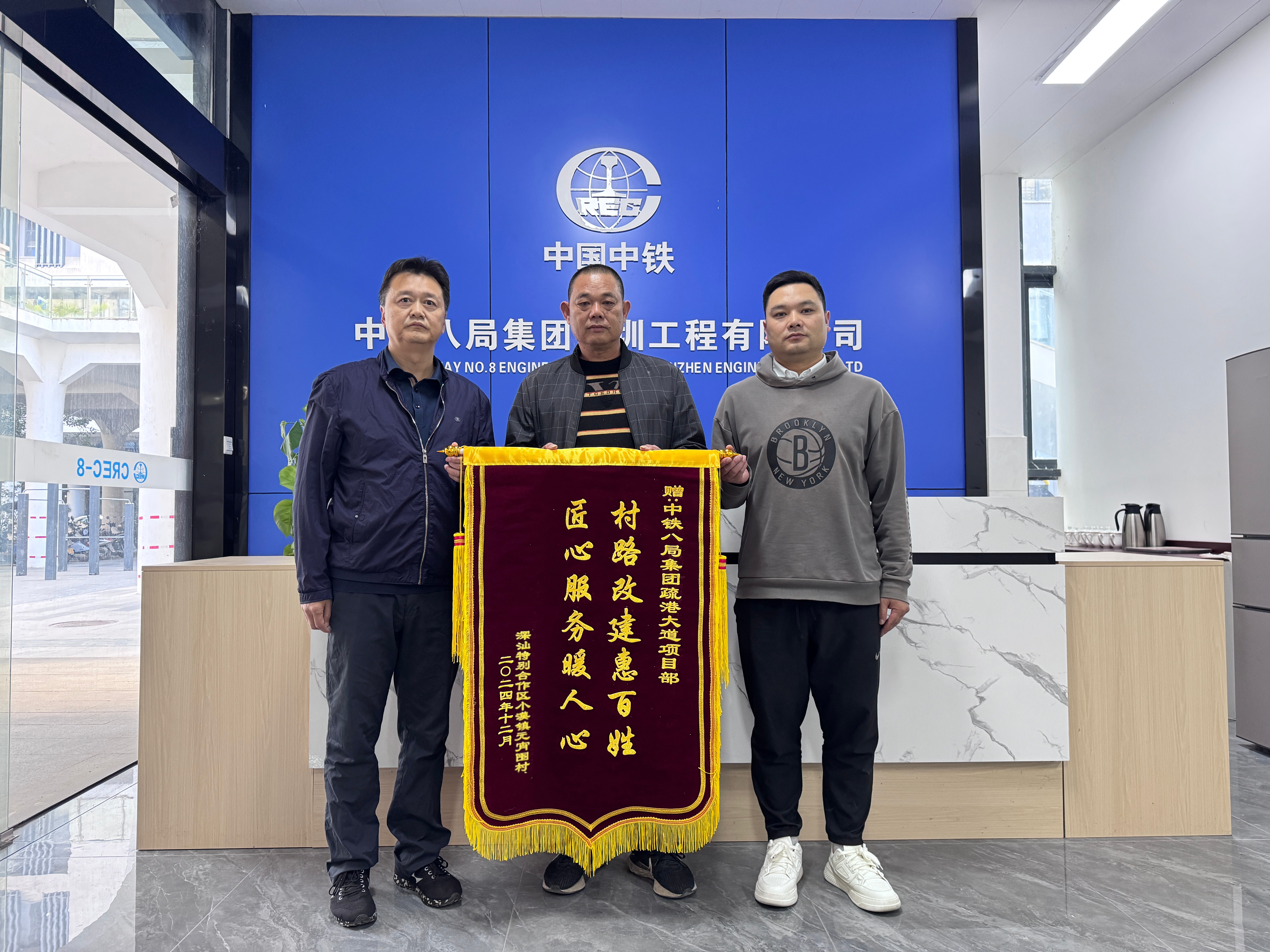近日,深圳市深汕特别合作区小漠镇元新村村民委员会向公司送来了“村路改建惠百姓 匠心服务暖人心”锦旗和感谢信,对公司在建设疏港大道(鹏兴大道至红海大道段)市政道路工程设计施工总承包(EPC)项目期间,帮助村民高效完成村道改建、改善村内道路环境、保障村民安全出行表示最衷心的感谢与最诚挚的表扬。