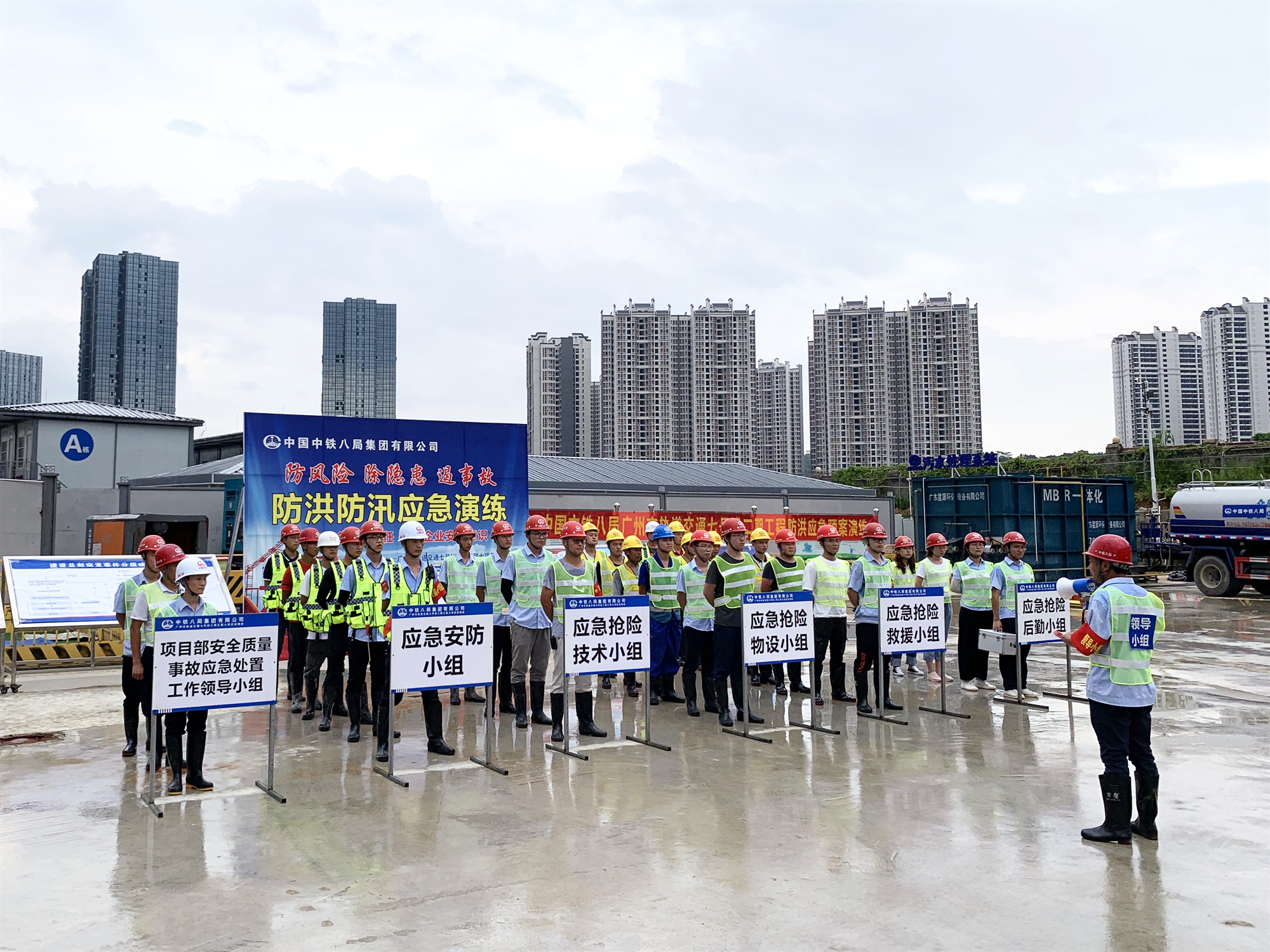 广州地铁七号线二期项目部开展防洪防汛应急演练