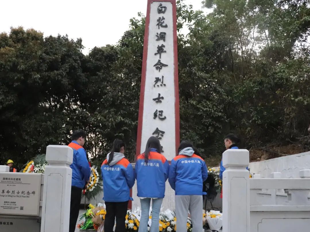 近日,中铁八局深圳地铁22号线项目部组织青年员工到白花洞革命烈士纪念公园开展祭扫纪念碑活动。