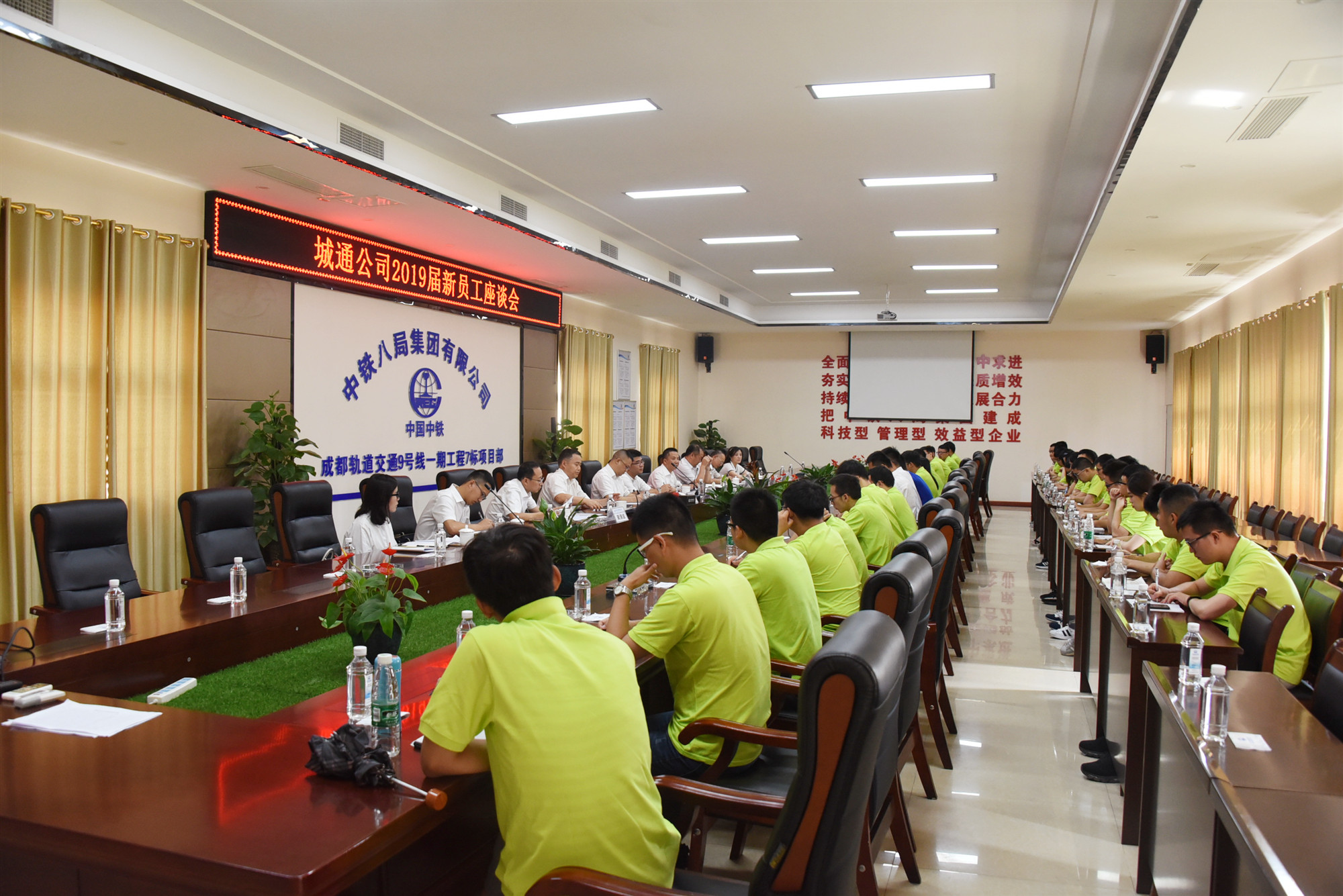7月17日,公司在成都地铁9号线项目部会议室组织召开2019届新员工座谈会。集团公司人力资源部、党委干部部副部长胡方平,团委书记郑彧,人力资源部人事科科长龚清波,公司党委书记冉全生,党委副书记、纪委书记、工会主席李鸿,人力资源部、党委工作部及团委负责人,项目书记代表、往届优秀青年员工代表、全体新员工参加。会议由李鸿主持。