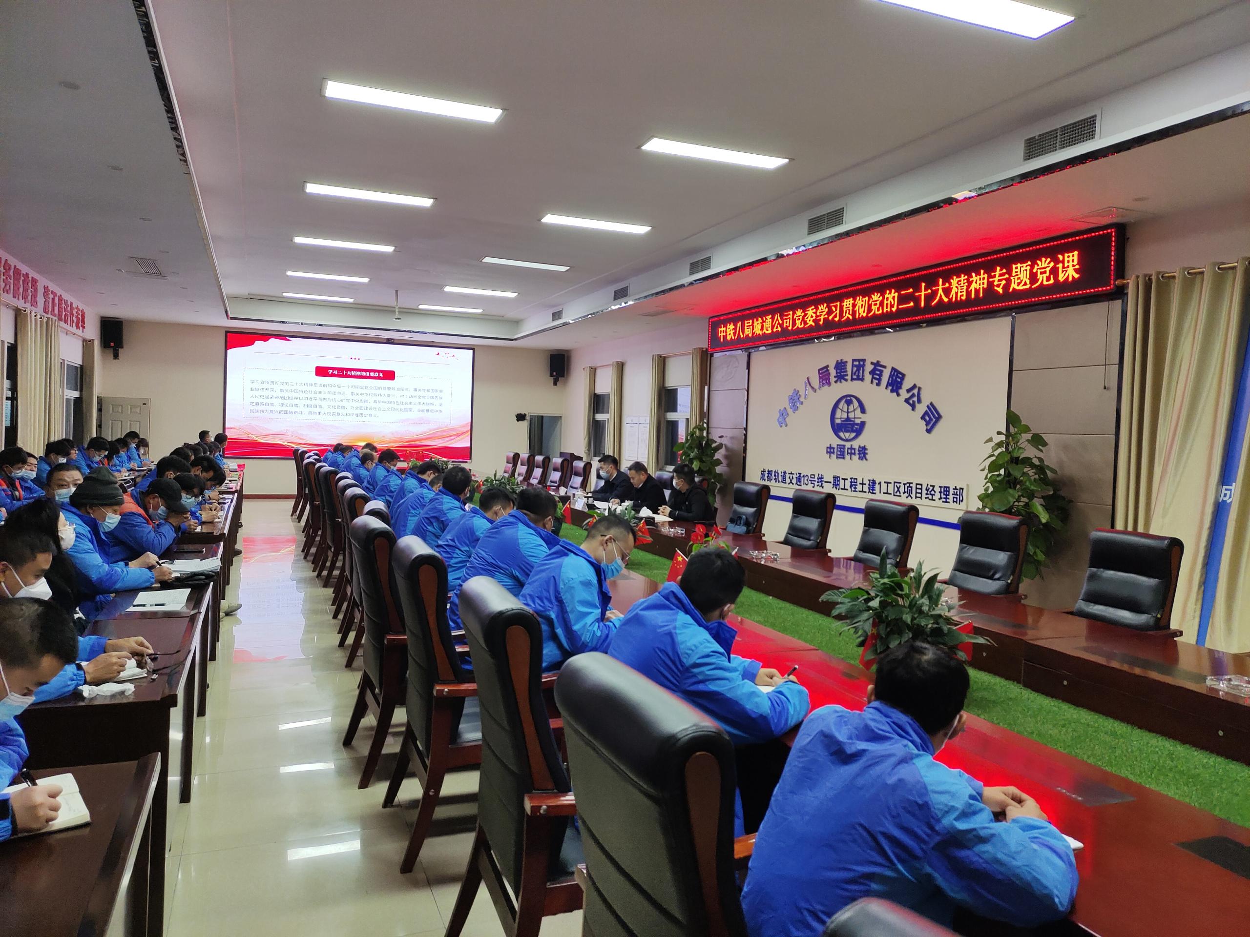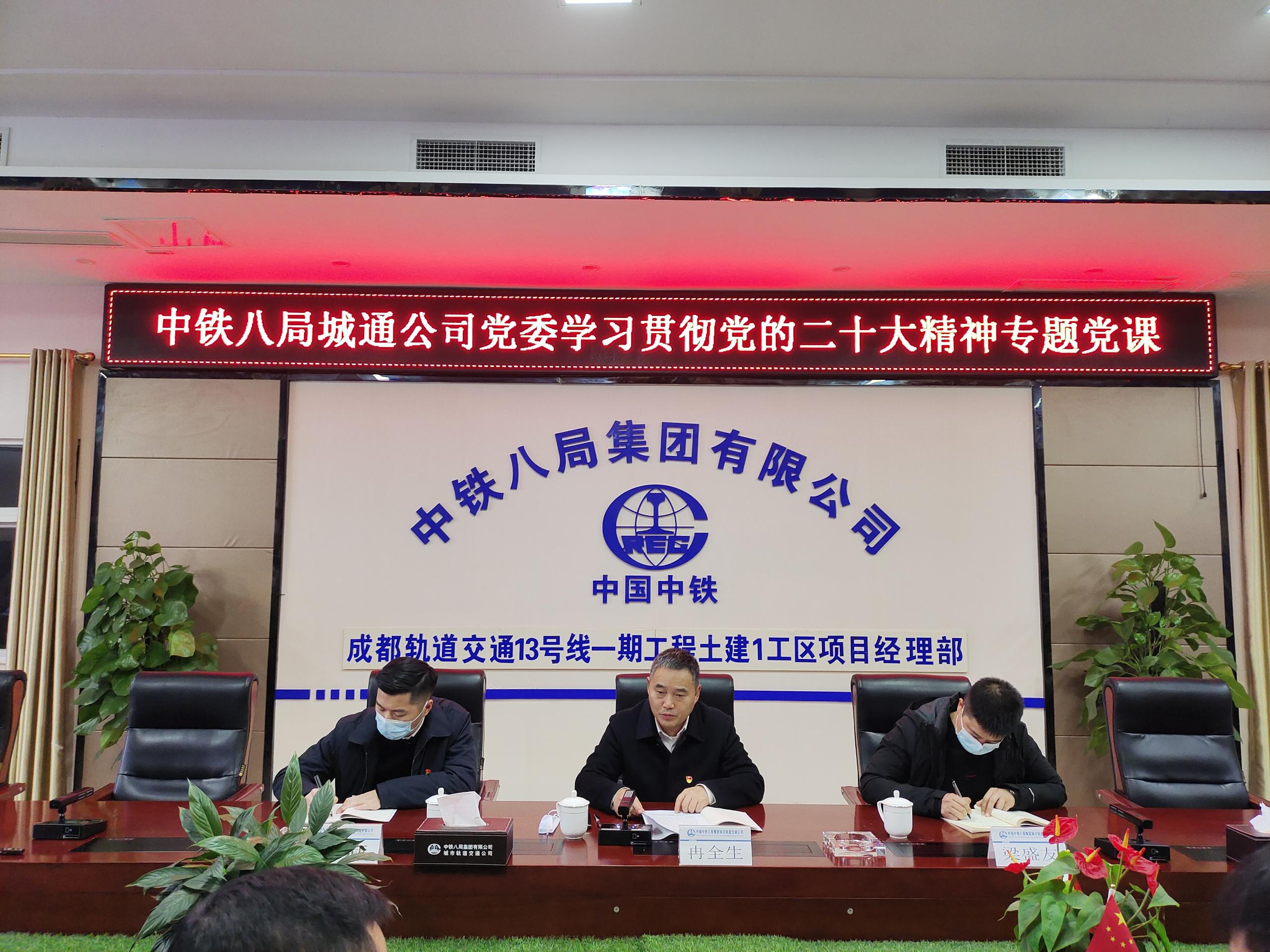 12月8日晚,公司党委书记冉全生到基层联系点中铁八局成都轨道交通13号线项目部讲授了《全面学习贯彻党的二十大精神 为企业高质量跨越式发展而不懈奋斗》专题党课,公司副总经理梁盛友,党委工作部负责人及项目全体员工参加。