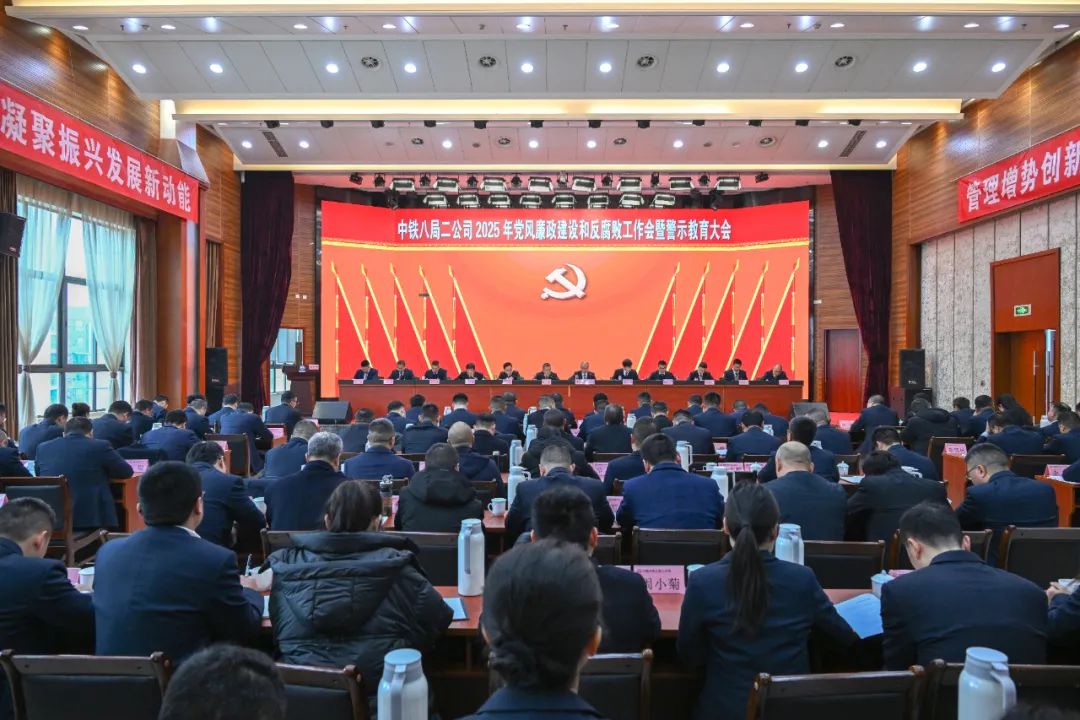 2月9日,中铁八局二公司党委在蓉召开2025年党风廉政建设和反腐败工作会暨警示教育大会。公司总经理、党委副书记李东山主持会议。