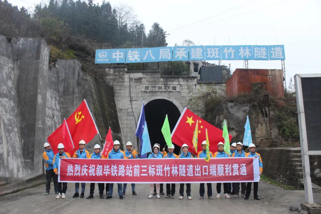 其中,控制性工程斑竹林隧道全长12.8公里,是全线最长隧道。中铁八局叙毕项目部克服了涌水、突泥、岩溶、瓦斯、浅埋、反坡排水、顺层等高危高风险地质情况和下坝隧道煤层瓦斯、有害气体、岩溶发育、临近或穿越暗河等因素带来的不利影响,最终如期高质量兑现工期目标。建设期间,项目部采取新奥法组织施工,推行机械化减人,按照“岩变我变”策略动态调整施工方案,浅埋及断层破碎带推行“短进尺、弱爆破、管超前、强支护”等措施,有效保证了项目安全有序推进。同时,项目部严格制定并落实环水保措施,在隧道口及拌合站均设置污水处理系统,确保施工废水零排放,并对生活垃圾采取随车携带、分类处理的方式,以实际行动践行绿色环保的施工理念。