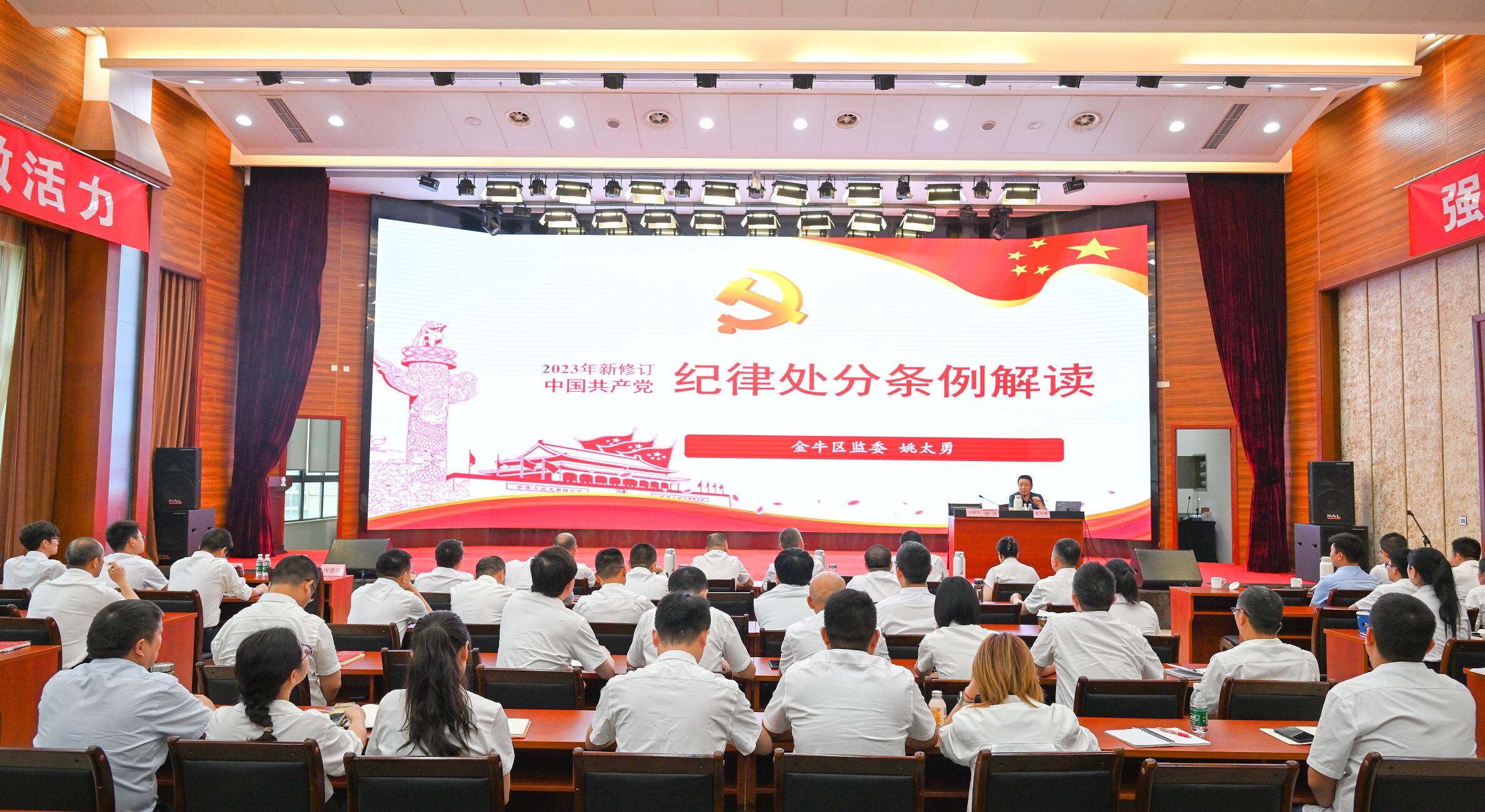 会议期间,公司党委邀请了成都市金牛区监委委员姚太勇开展了党纪学习教育专题授课。公司中心组成员、500余名党员干部通过“线上+线下”方式参加学习。